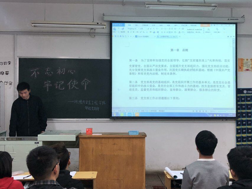 为深入推进“两学一做”学习教育常态化制度化,认真学习贯彻党的十九大精神,用习近平新时代中国特色社会主义思想武装头脑、指导实践。2019年4月20日,环境与安全工程学院特能专业学生党支部在10301Z开展“不忘初心、牢记使命”的主题党日活动。环境与安全工程学院特能专业学生党支部全体党员参加了本次活动。