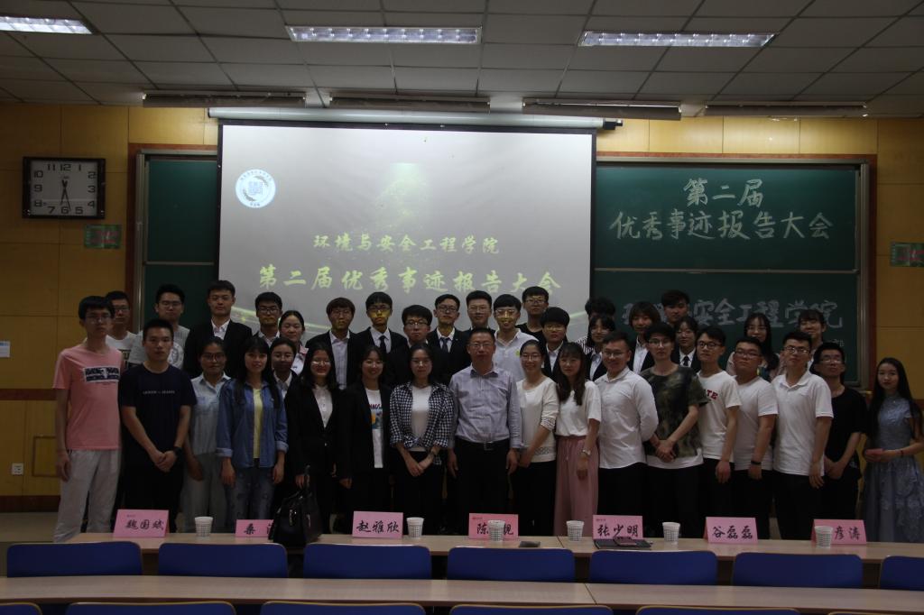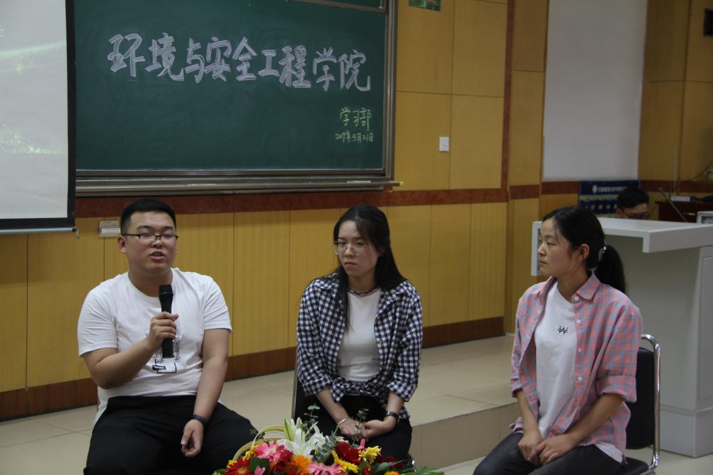 2019年05月21日,环境与安全工程学院成功举办大学生优秀事迹报告会,院党委副书记张少明、学生科科长陈靓、辅导员 赵雅欣出席会议。