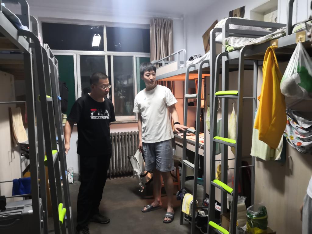 在学生宿舍,张少明副书记认真询问了学生疫情期间在学校的生活、学习情况,强调疫情期间要服从学校相关管理制度,严格做好个人防护,保持良好的身心状态。同时保持宿舍卫生、常通风,不使用大功率电器,保证安全良好的居住环境。