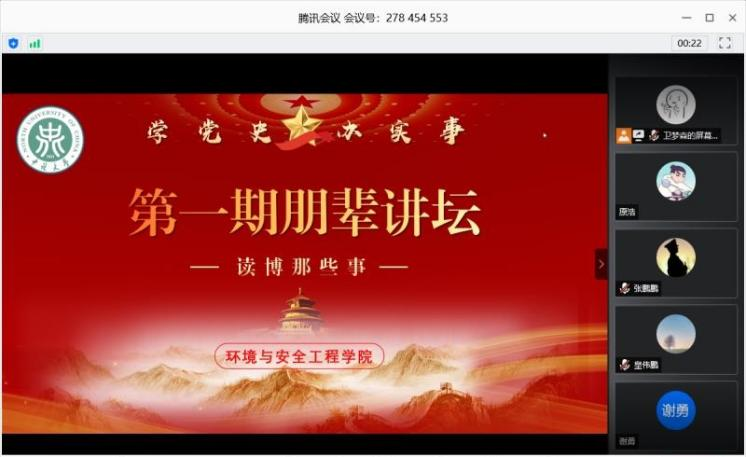 为增强党史学习教育的感染力、生动性,深入推进学院“我为群众办实事”实践活动,切实解决研究生实际问题,环境与安全工程学院开设了研究生“朋辈讲堂”,旨在增进朋辈力量在研究生中的影响,促进研究生间的沟通交流,提高研究生培养质量。
