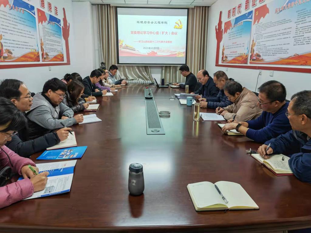 2021年11月9日下午,环境与安全工程学院党委在科学楼C座614会议室召开中心组(扩大)理论学习会议,学院党委委员、科级以上干部、党支部书记、系主任参加会议,会议由院党委书记赵树森同志主持。