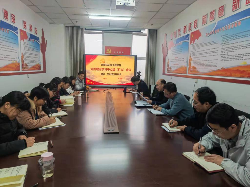 2022年3月22日上午,环境与安全工程学院党委在科学楼C座614会议室召开中心组(扩大)理论学习会议,学院党委委员、科级以上干部、党支部书记、系主任、组织员参加会议,会议由院党委书记赵树森同志主持。