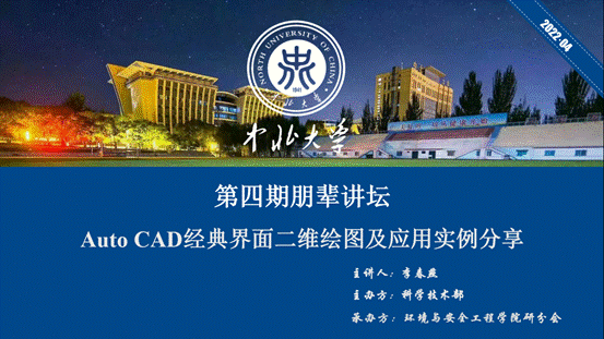 为加强同学们间的学术交流,帮助同学们掌握更多的实用软件,2022年4月24日上午10:30,环境与安全工程学院在线上举行了题为“Auto CAD经典界面二维绘图及应用实例分享”的朋辈讲坛。此次讲坛由51论坛