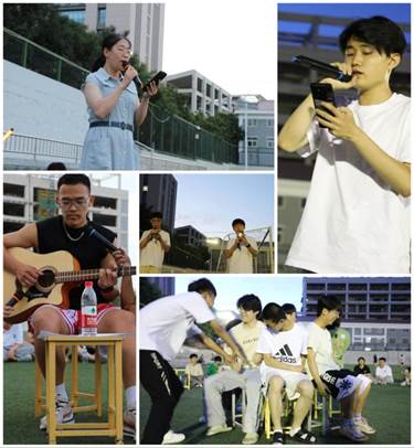 为增强学生的凝聚力和集体荣誉感,加强沟通与了解,激发同学们对大学生活的热情,2023年6月20日傍晚,环境与安全工程学院2022级学生在东区足球场举行了土木专业联谊会。晚会共包括听歌识曲,同学个人唱歌表演,吉他弹唱,传声筒和集体大合唱等15项趣味活动。