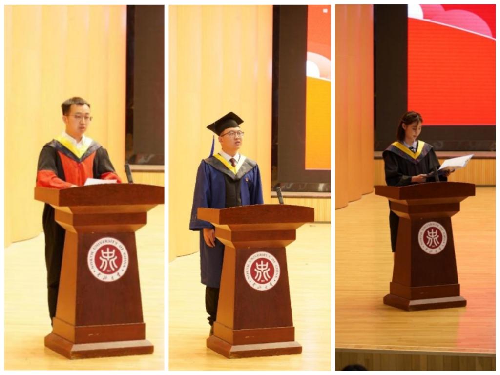在学子发声环节,2025 届优秀毕业生代表依次上台分享感悟。博士石宇槐讲述了自己在科研道路上的坚持与突破,立志未来继续深耕专业领域,助力科研进步;硕士沈新月聚焦实践创新,分享了参与项目的成长经历,表达了将永葆热忱、发光发热的决心;本科邓灵雨深情回顾了校园生活的点滴,向学院和老师们表达感恩之情,表示将带着学院赋予的底气勇敢追逐梦想。不同学历毕业生的分享,展现出多样的成长轨迹,却都饱含着对学院的感恩与对未来的憧憬。