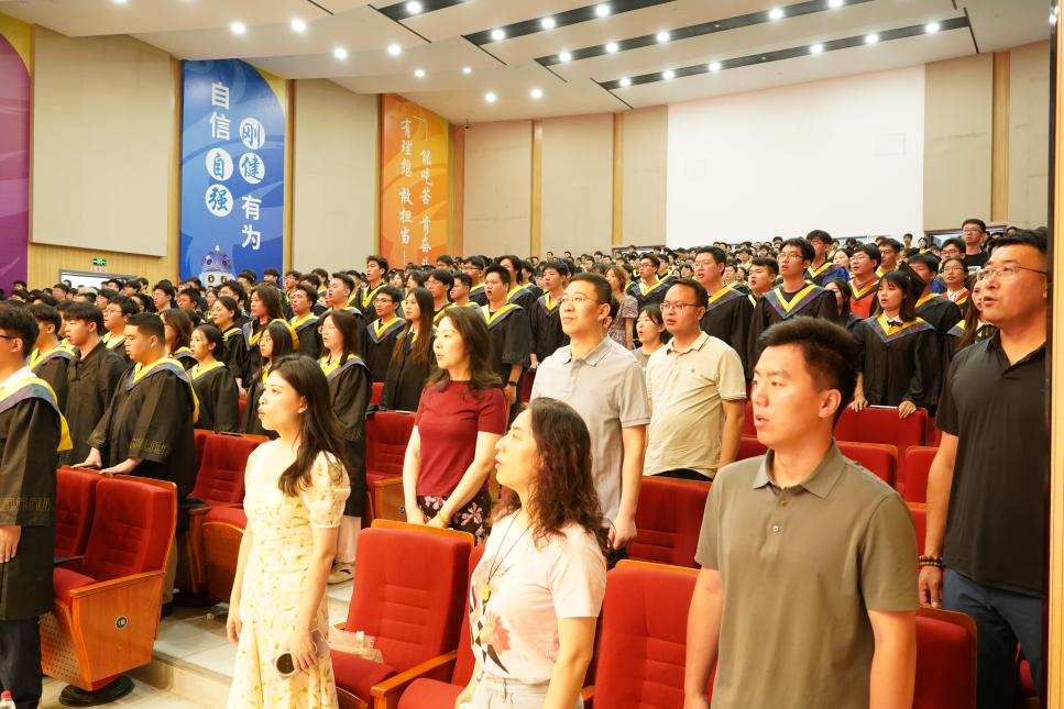 典礼在庄严的国歌声中拉开帷幕。全体师生肃立,激昂的旋律激荡起浓浓的家国情怀,也寓意着毕业生们将带着使命担当,奔赴祖国各地。国歌结束后,主持人院党委副书记张少明宣布典礼正式开始,温馨而庄重的氛围迅速弥漫全场。